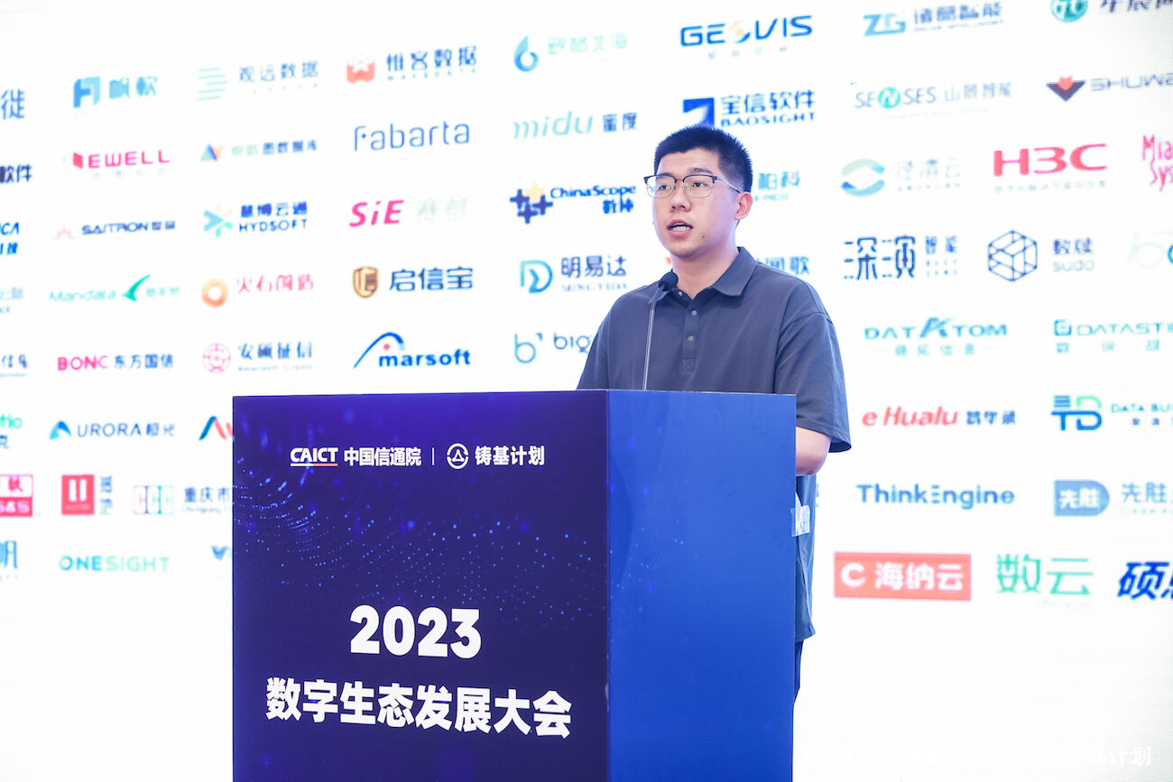 (图:中国信通院泰尔终端实验室数字生态发展部工程师曹海啸发布《高质量数字化转型产品及服务全景图(2023)》)